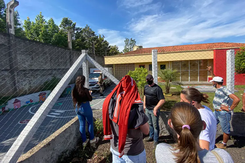 As equipes de resgate dos bombeiros e as ambulâncias do serviço de atendimento móvel de urgência (samu) ainda estão na creche de saudades, em santa catarina.